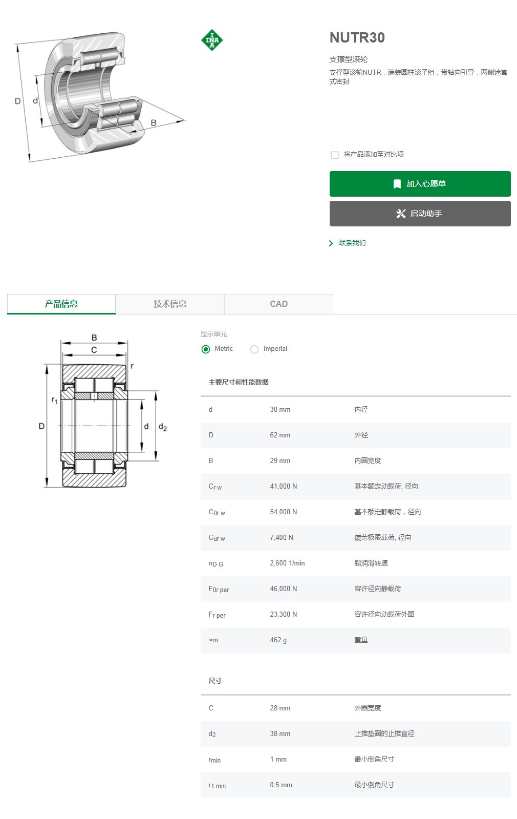 INA滾輪軸承NUTR30-A尺寸參數